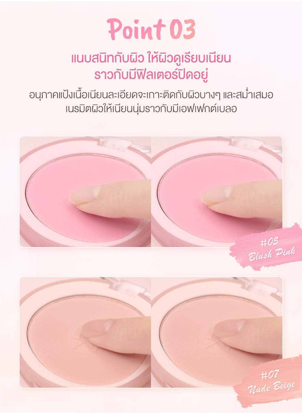 ปัดแก้มเนื้อฝุ่นสีชัดสดใส เพิ่มความสดใส